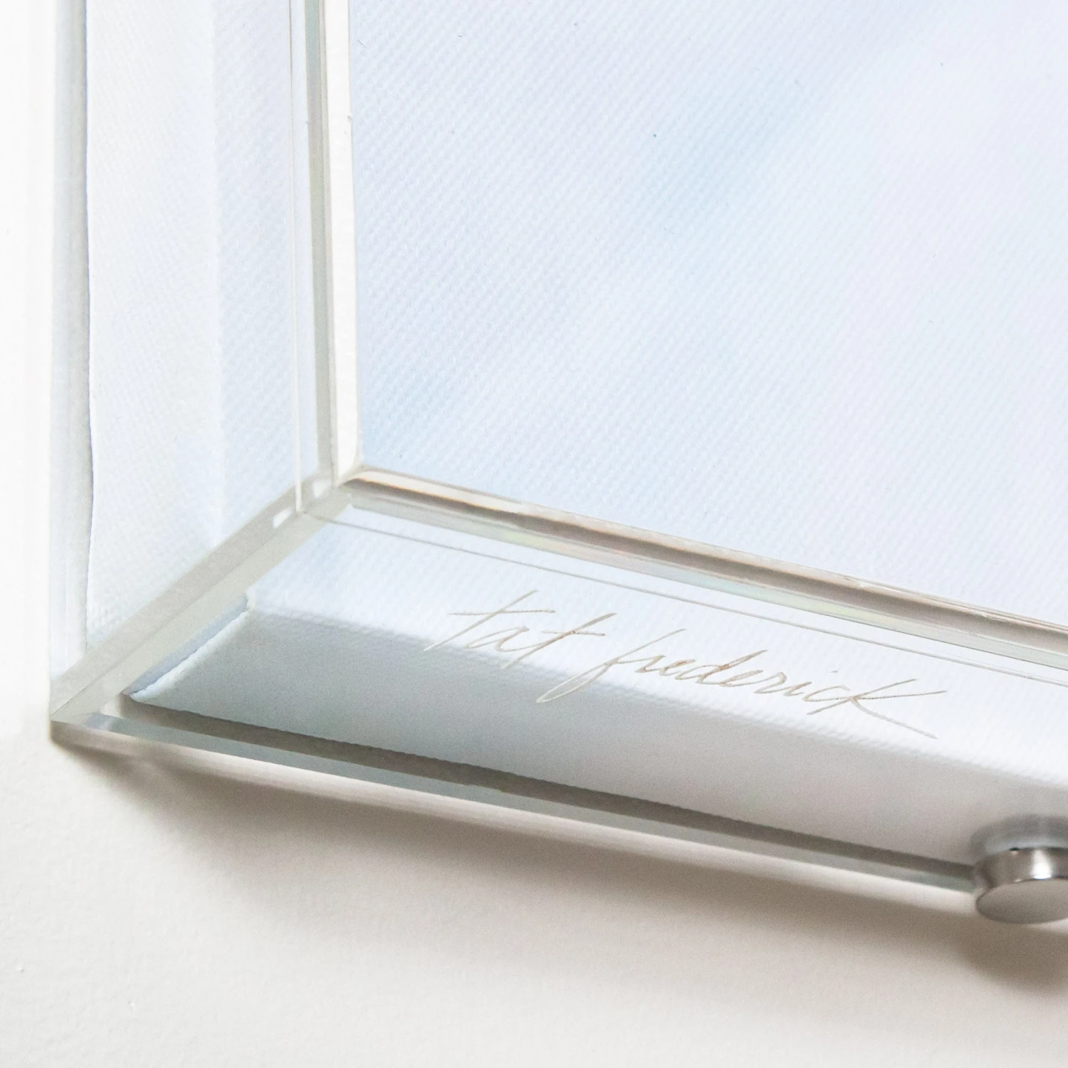 A new design by Tat Frederick! “Alcohol You Later” made out of shaved crayon and fixed to a painted cloud-like canvas and framed in an acrylic shadowbox.