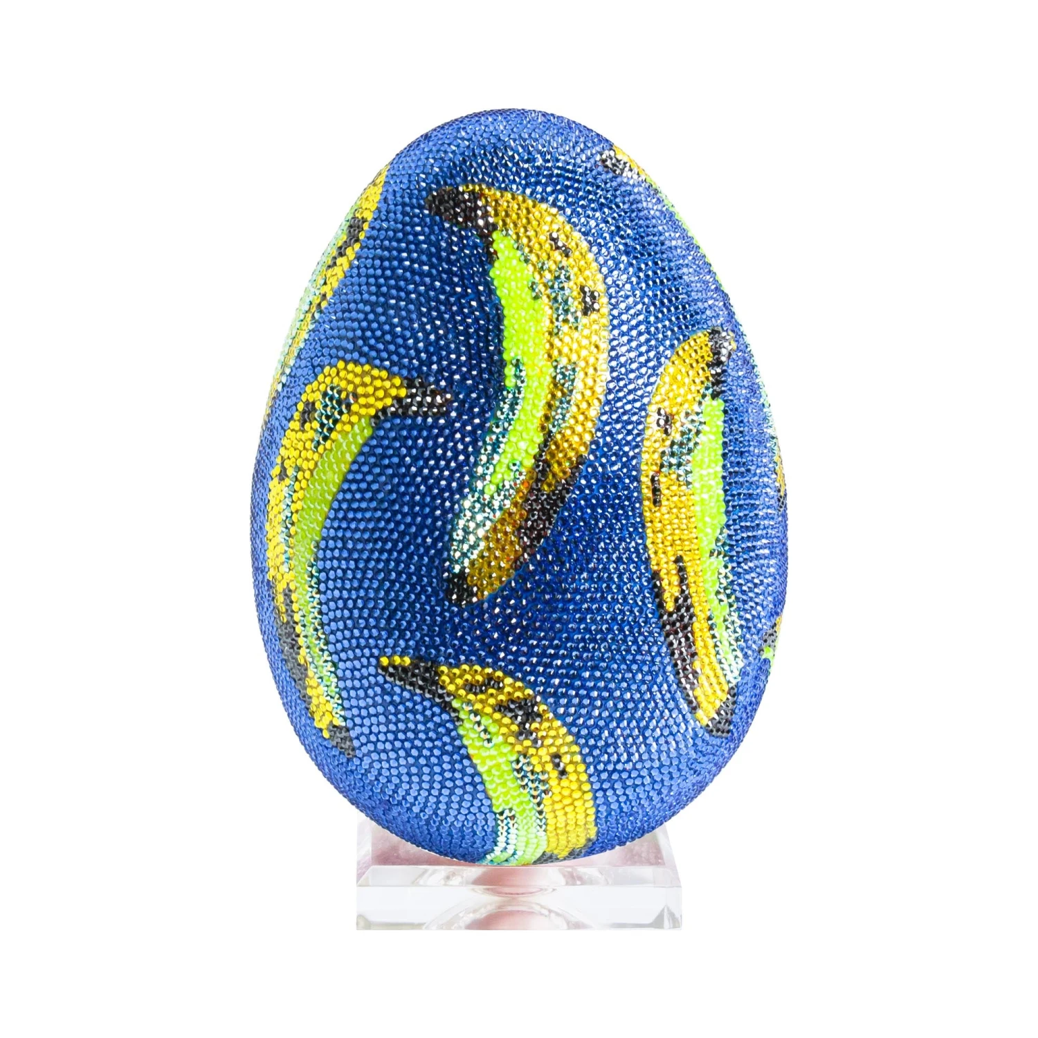 This sculpture is bananas! Hand-painted by artist Loli DiSanto, this paper mache egg is covered in approximately 12,000 Swarovski crystals. A unique accent that’s sure to start some conversations.