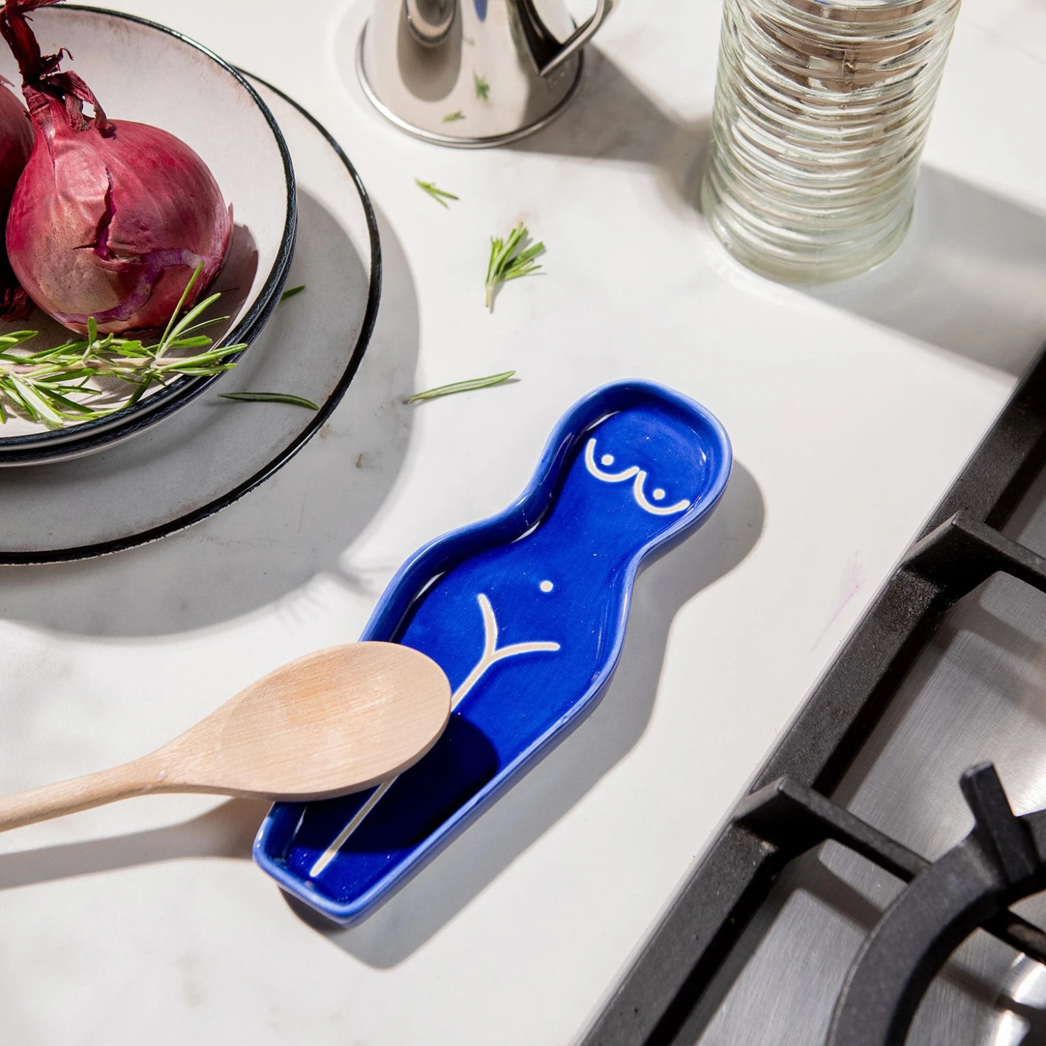 We love this blue spoon rest for keeping your counters clean AND curvy.Â