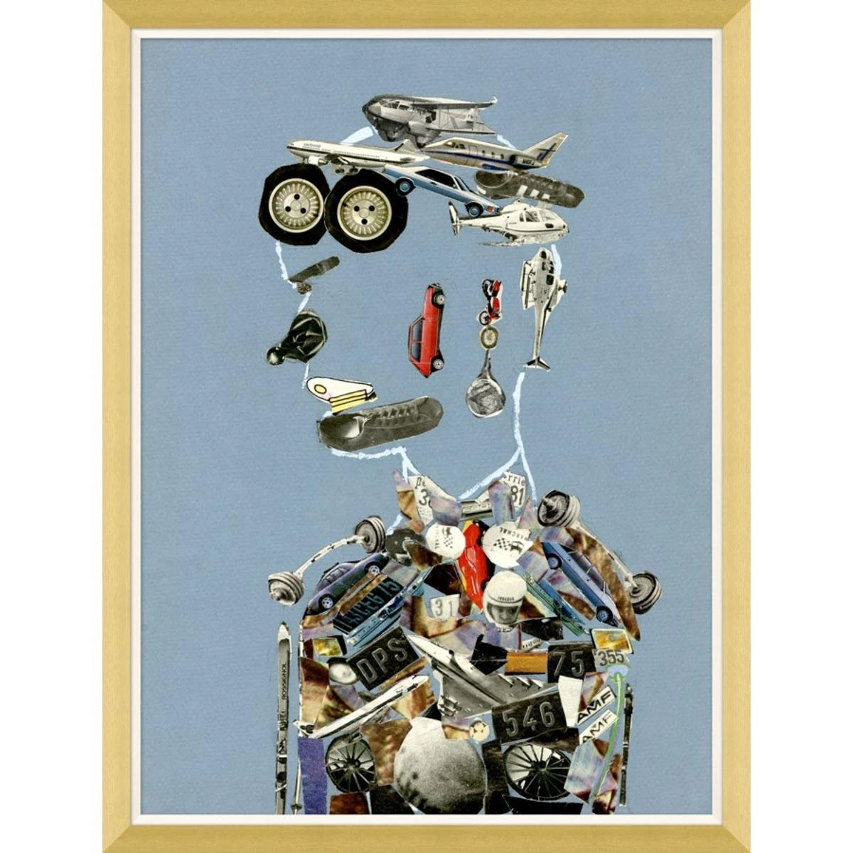 Graphic art print of an acrylic painting and cut out collage of a man. ‘Collage Abstraction’ is printed on archival paper and framed in a gold painted wood frame.