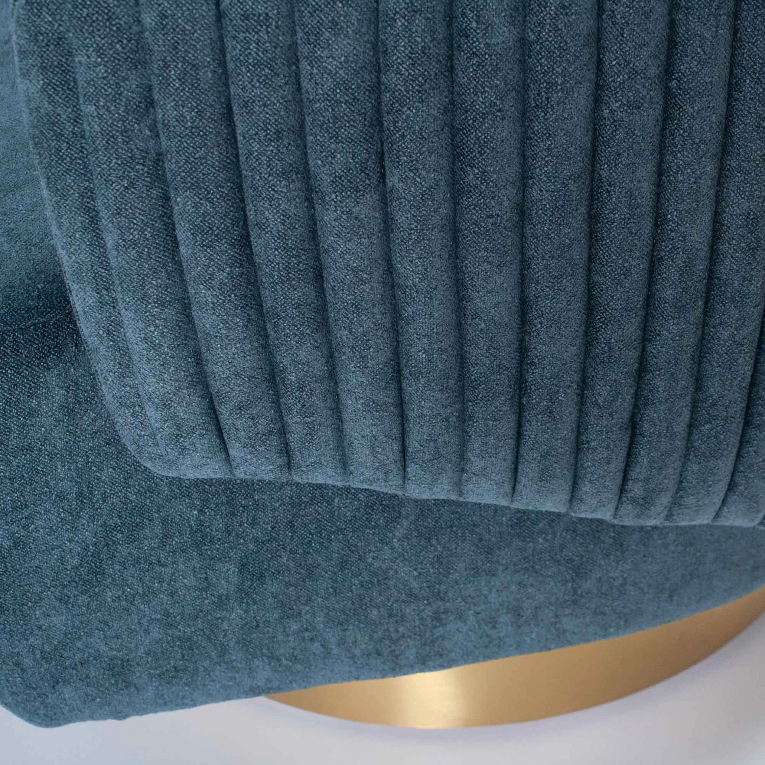 Our Come Next Monday Swivel will have you spinning for days. A brass base gives it modern flair, while textured indigo fabric keeps it practical. Pleats on the back give this one extra interest that doesn’t disappoint.
