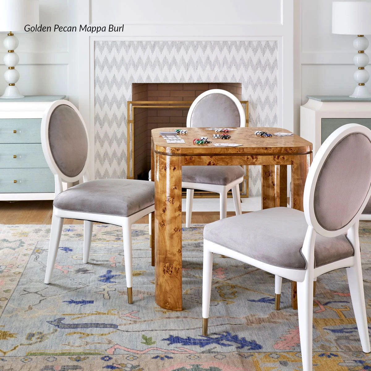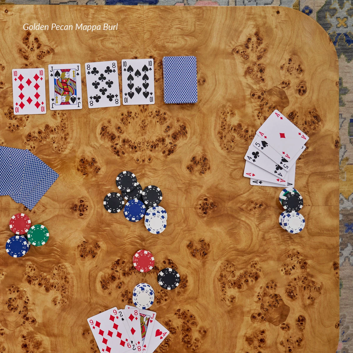 Whether you opt for burl, lacquer or a different finish, your next game night won’t know what hit it. Choose from two sizes to fit your slender chairs or serious gaming seats.Â