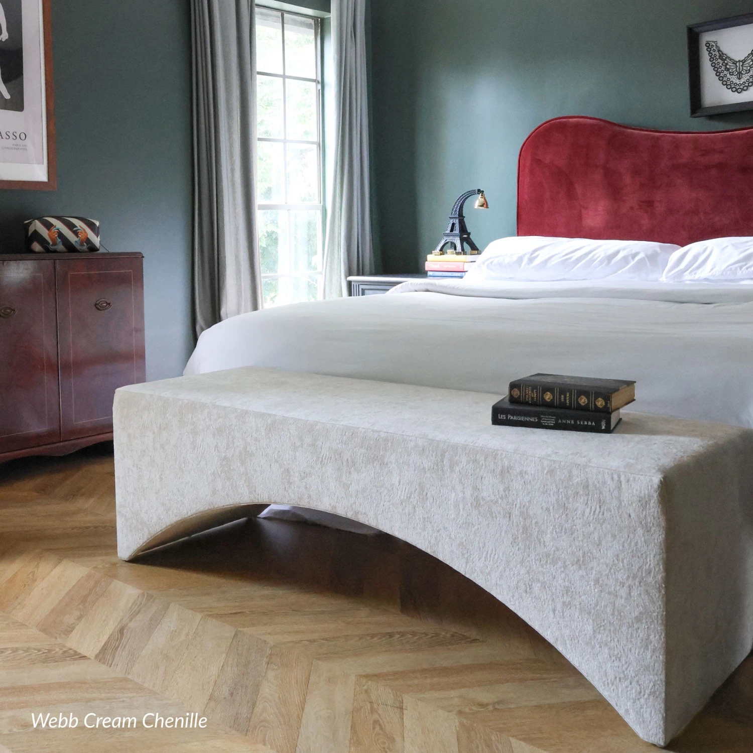 Our Custom Brooklyn Bench features an angular design with clean lines, allowing your upholstery to be the star of the show. An arched base adds some linear contrast and visual intrigue to this go-anywhere staple. Make it in a simple cream velvet, or go wild with a pattern – we can’t wait to see your vision!Â