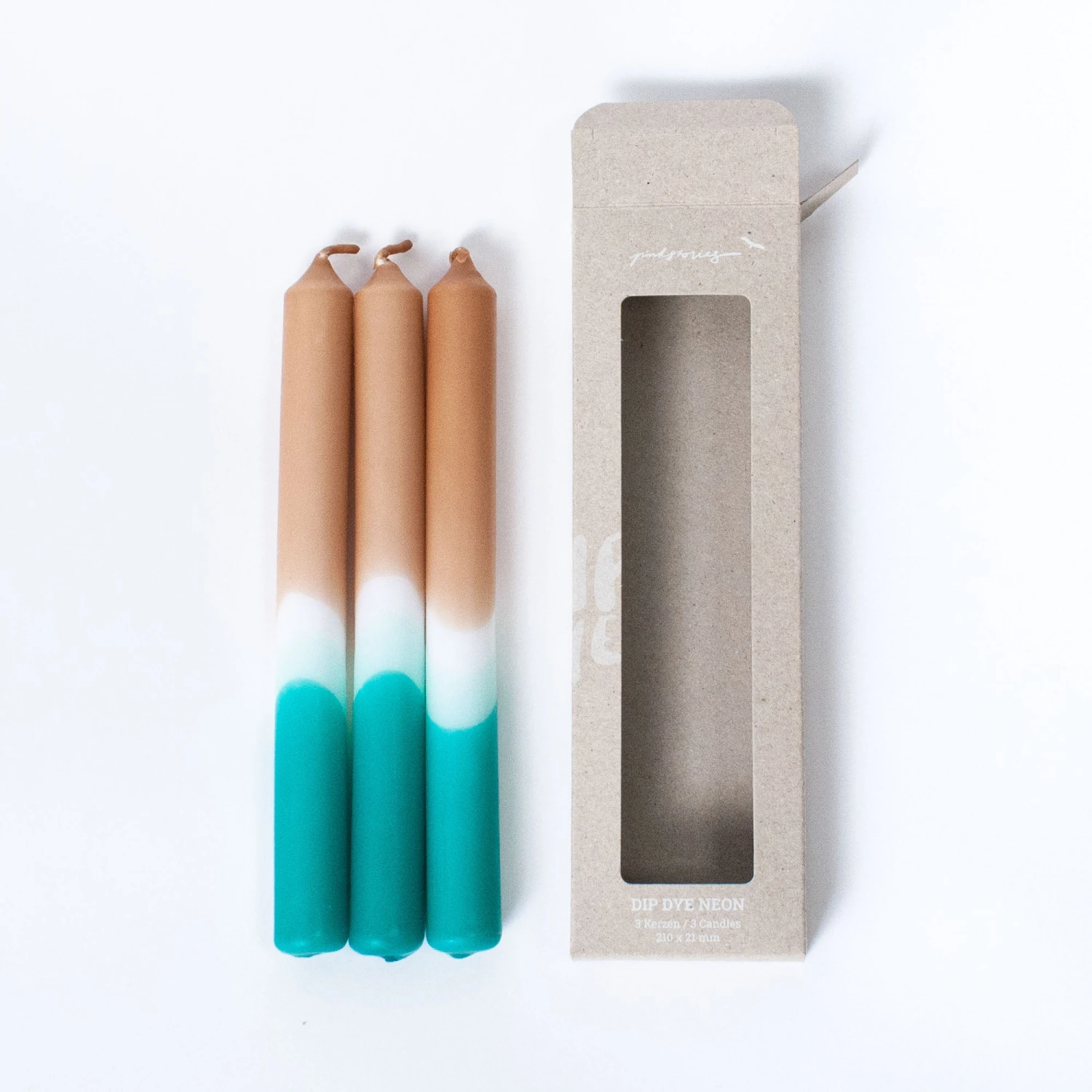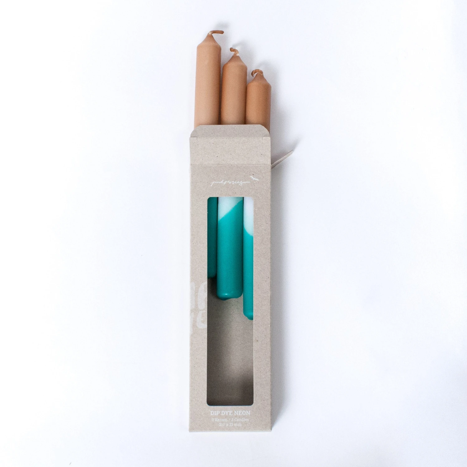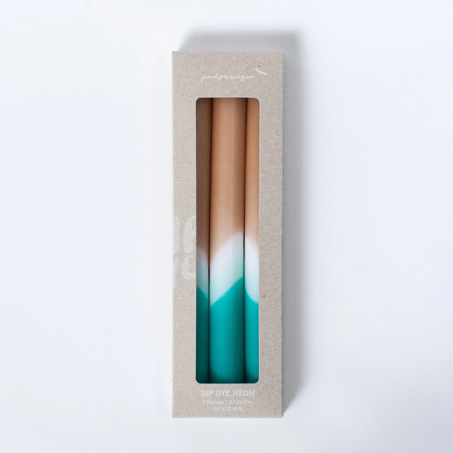 Set of three lovingly hand-colored taper candles in a neon look. While the colors stay the same, the pattern gradients vary with each candle to make it one-of-a-kind.