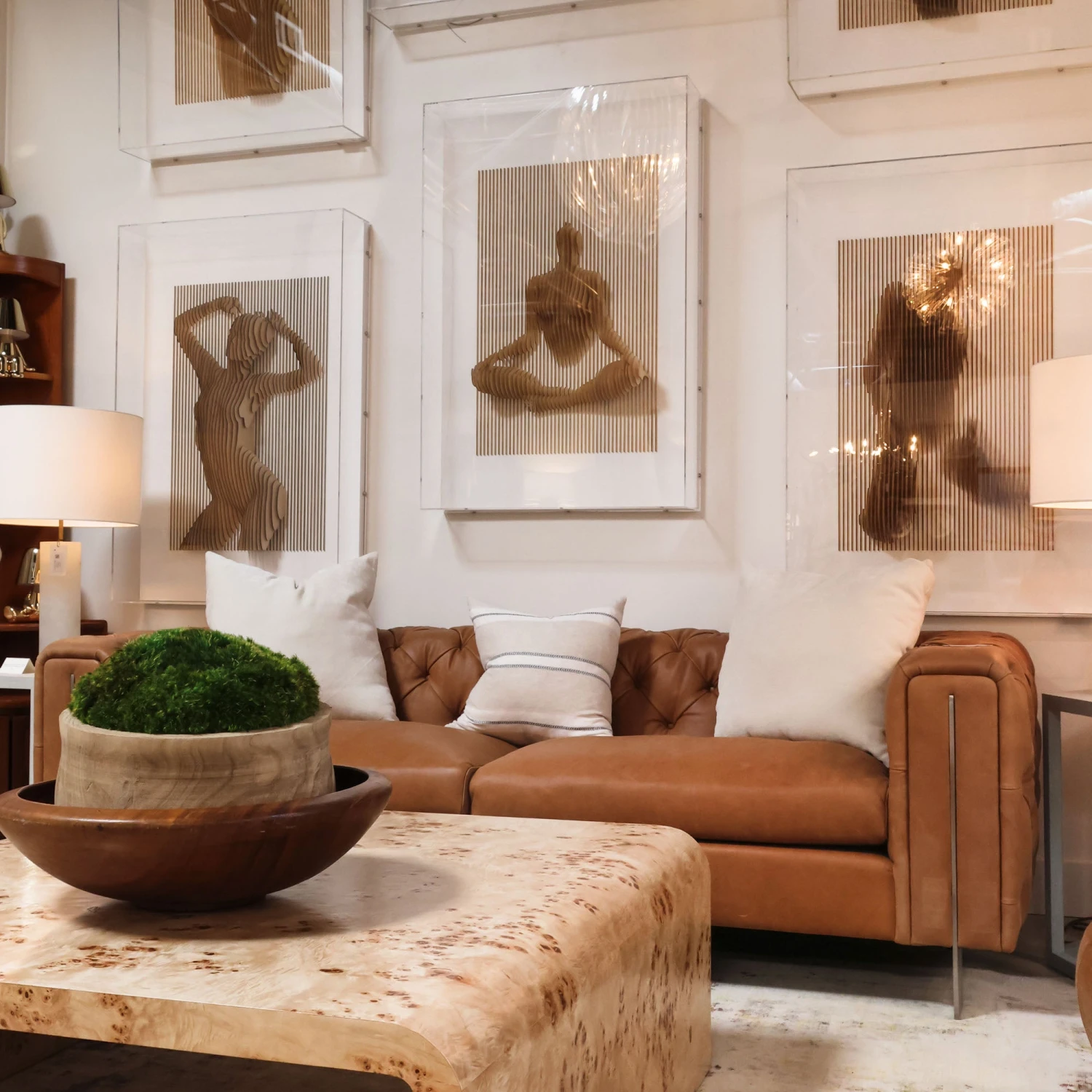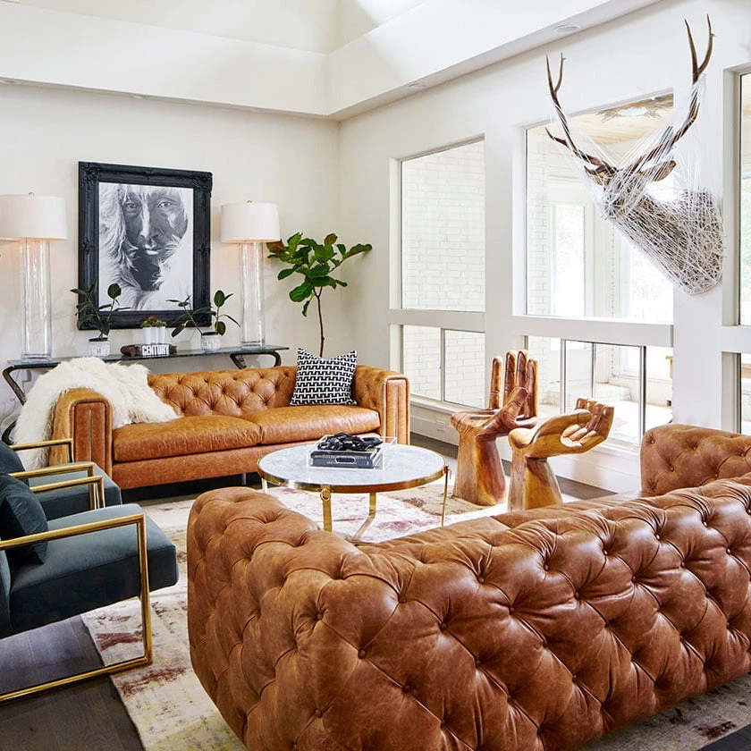 Tufted, tobacco leather beauty, our Duval Sofa is smoking sexy. Chrome leg modern detail.
