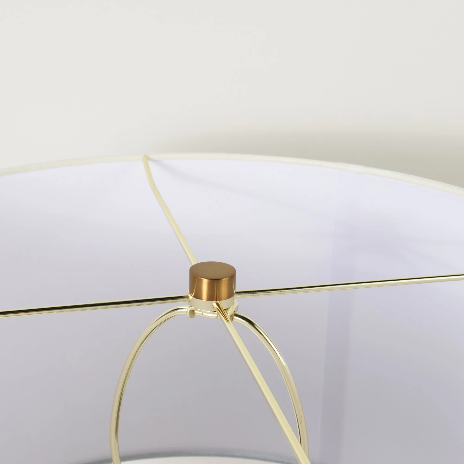 The classy mint hand blown glass base on our Essex Lamp is topped with a white linen shade and gold finial.