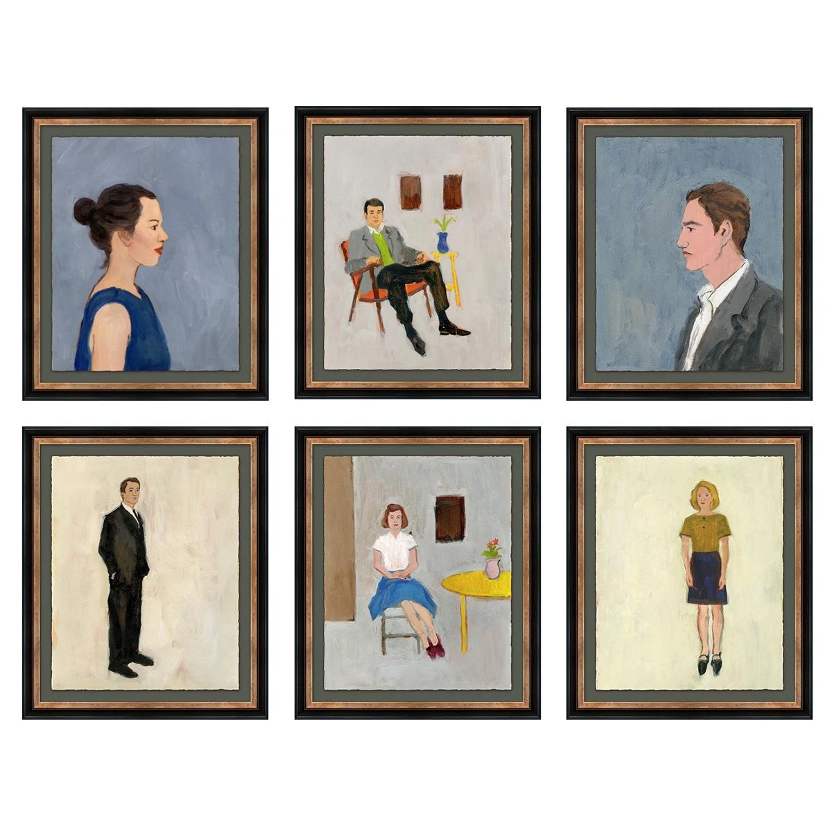 Everyday people art print. Archival ink and paper in a brass wood frame with glass panel.