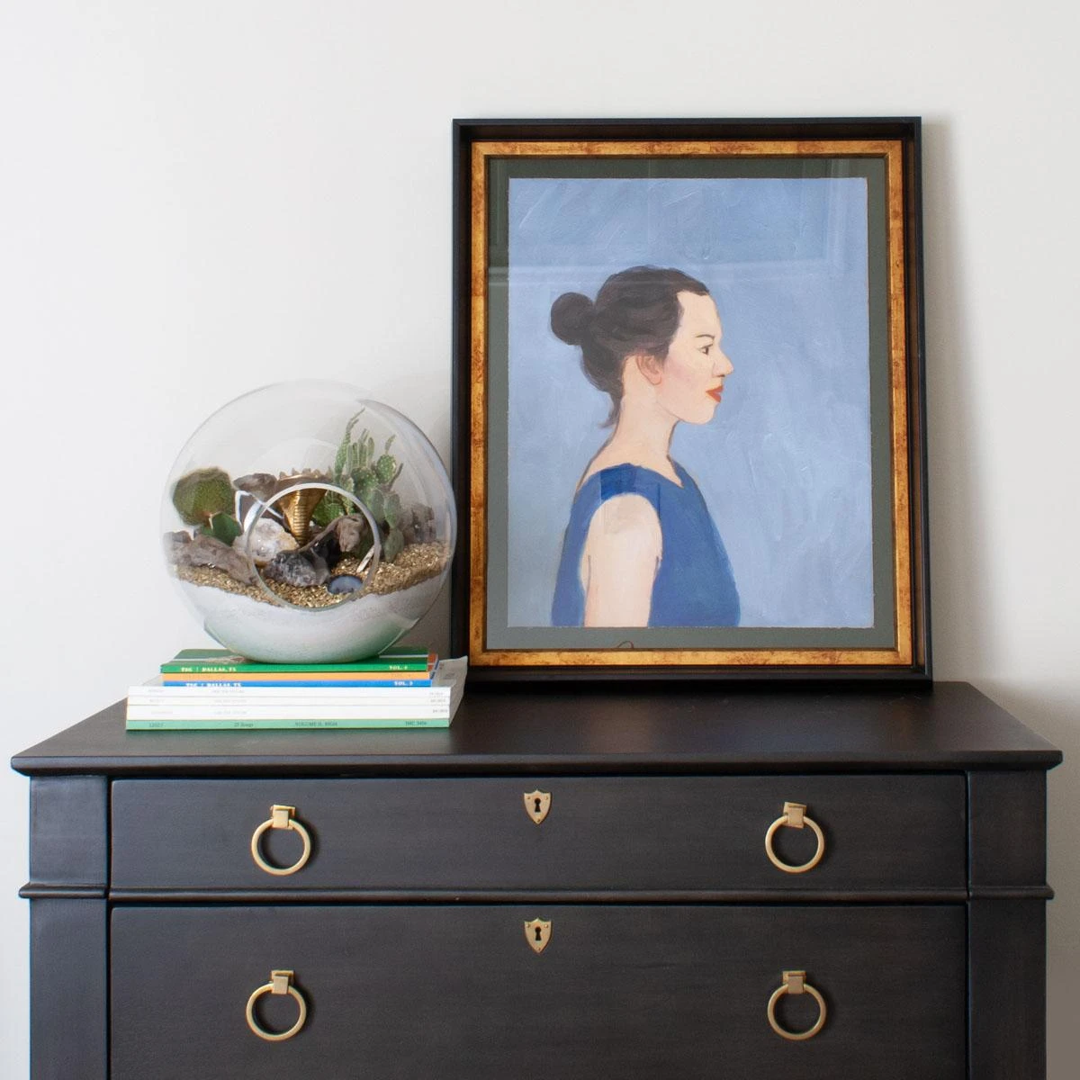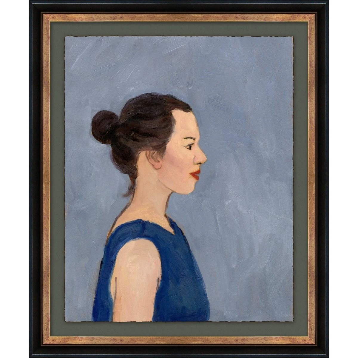 Everyday people art print. Archival ink and paper in a brass wood frame with glass panel.