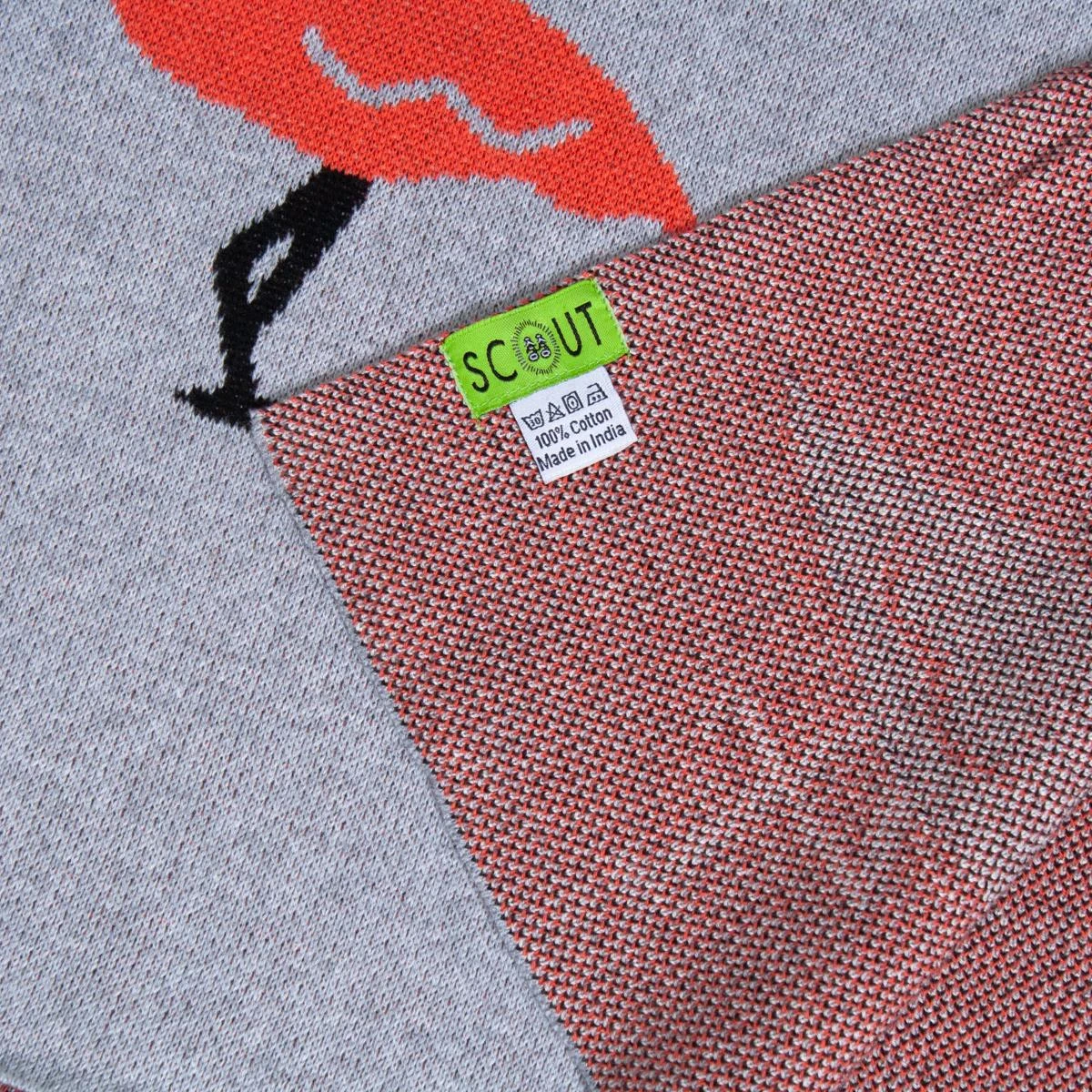 For kids or adults, this knitted grey flamingo blanket makes a fun throw for the living room or bedroom.Â