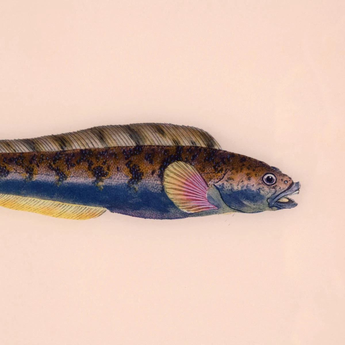 Scout exclusive pastel fish artwork. UV printed on acrylic film with a black and gold frame.