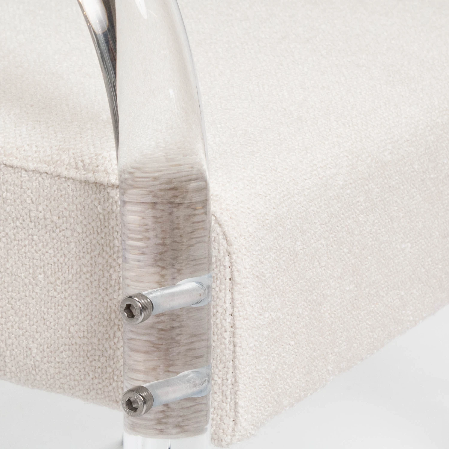 The Gibbs features a cream tweed poly-blend fabric that’s soft with just the right amount of weight and structure.