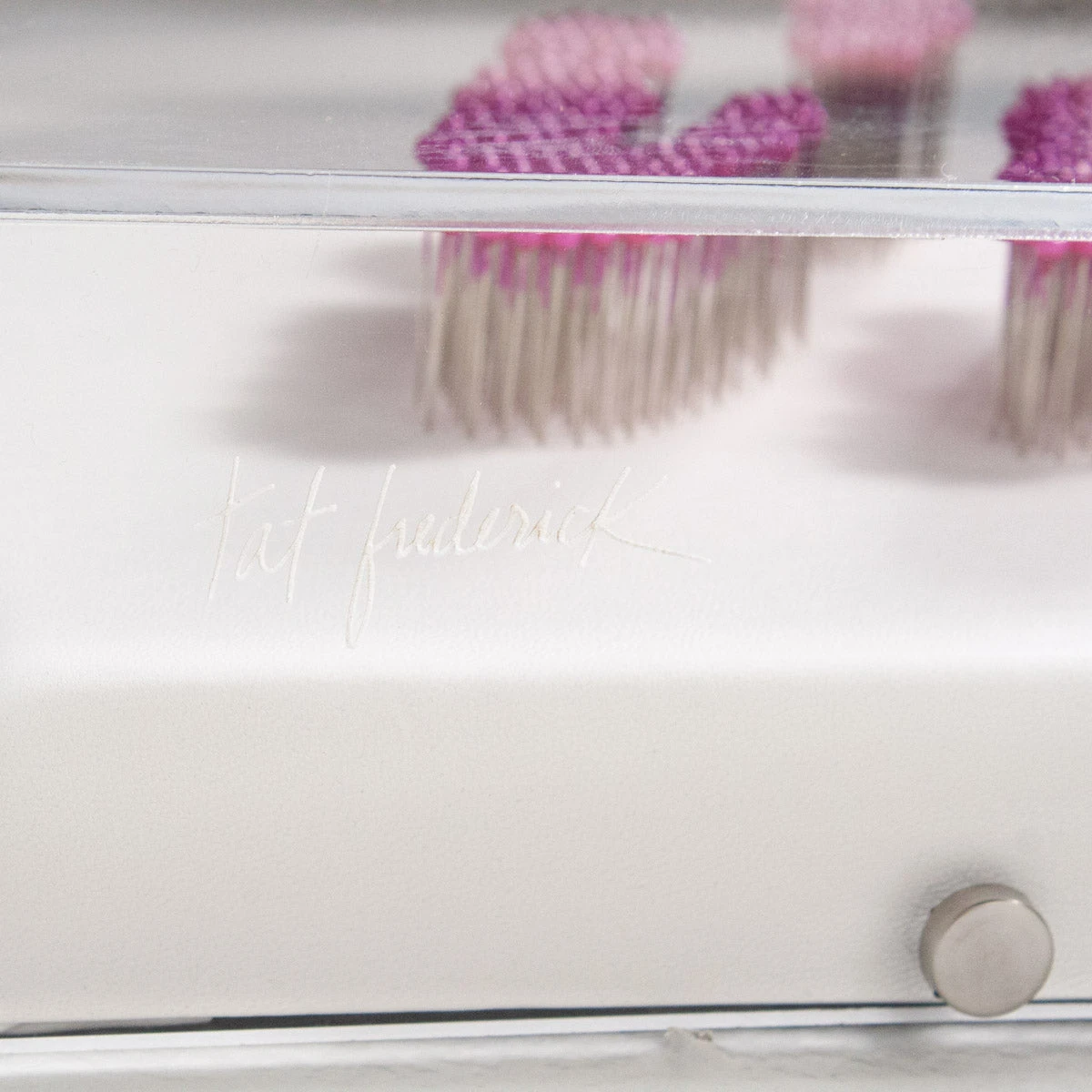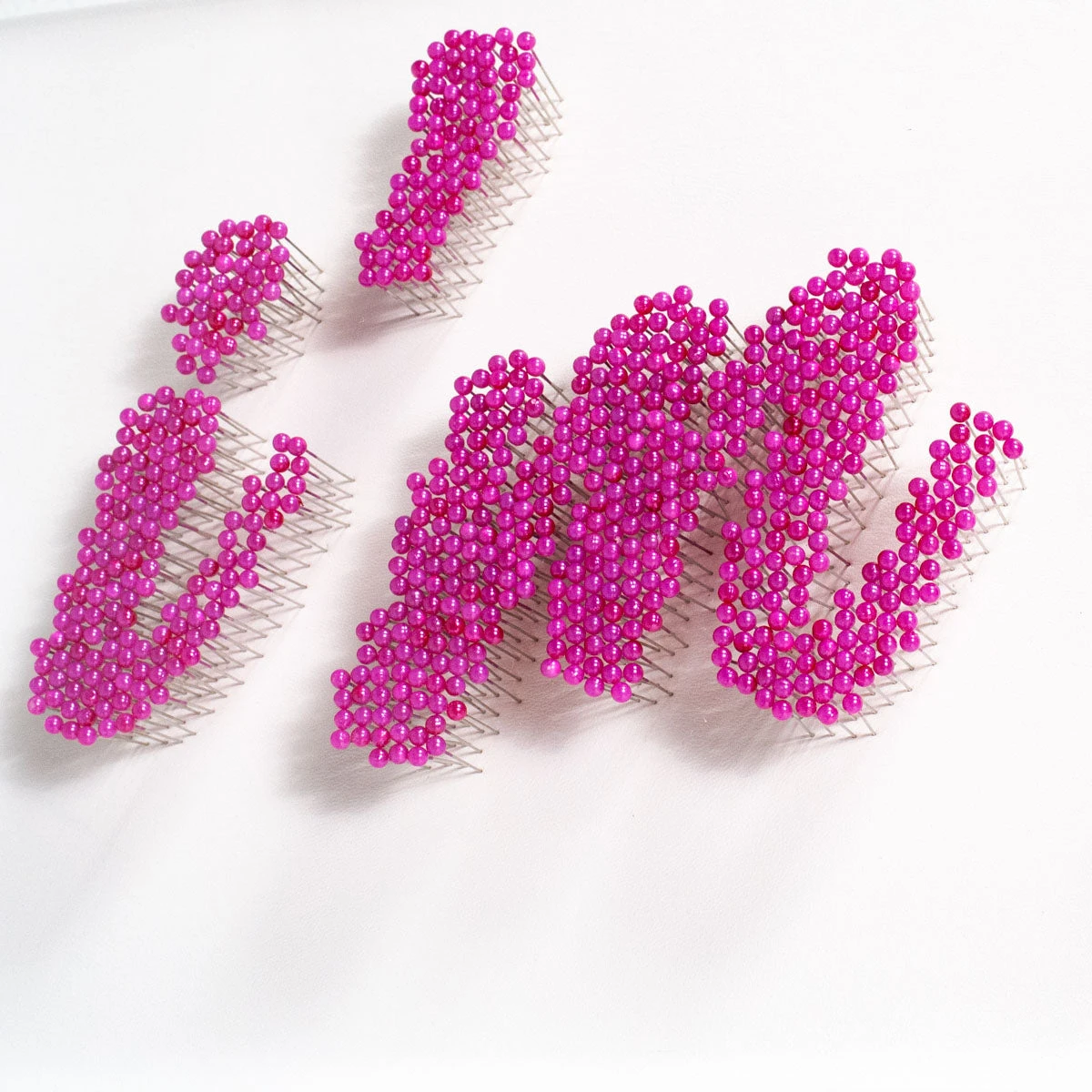 Mixed media artwork by Tat Frederick made with individually placed pins and framed in an acrylic shadowbox.Â