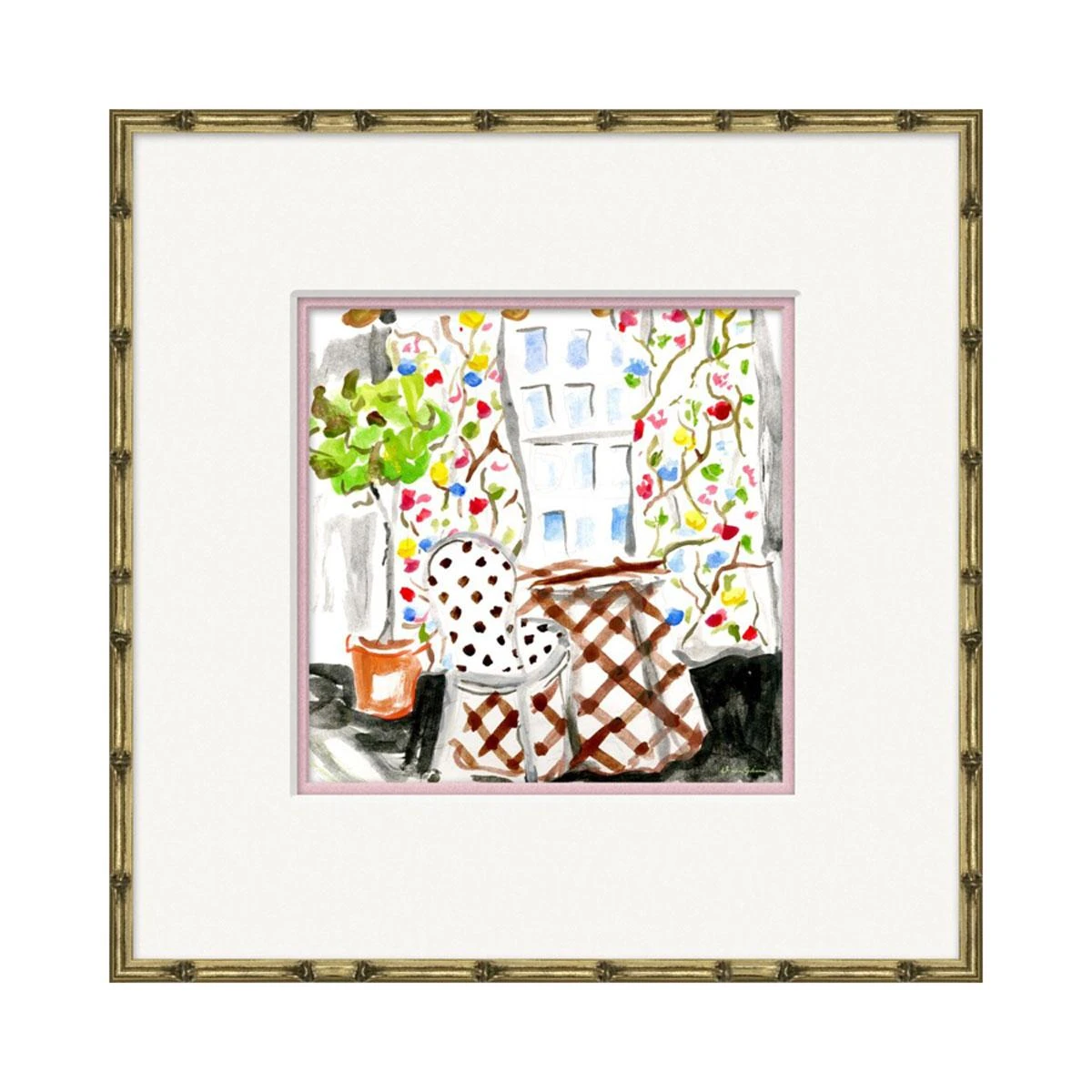 Acrylic painting by Dana Gibson, printed on archival paper and framed in a gold painted faux bamboo frame.Â