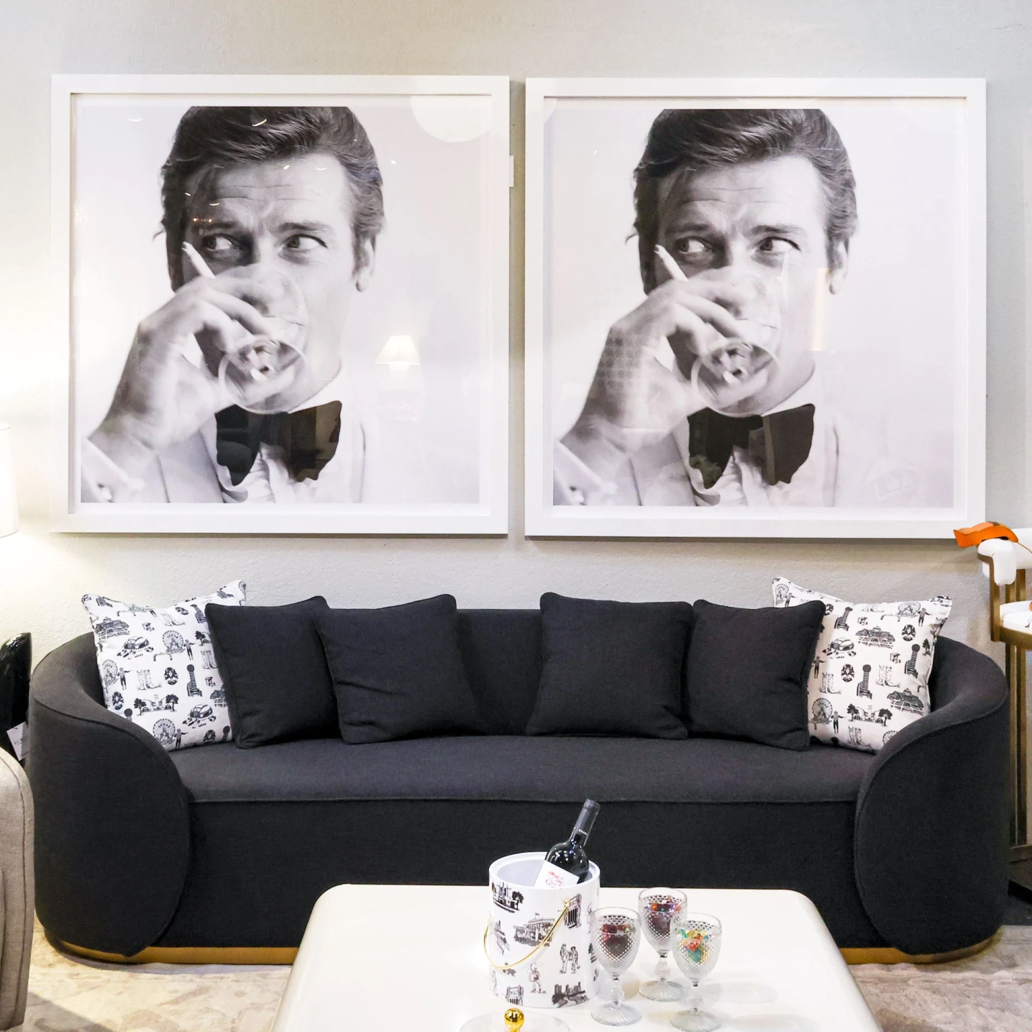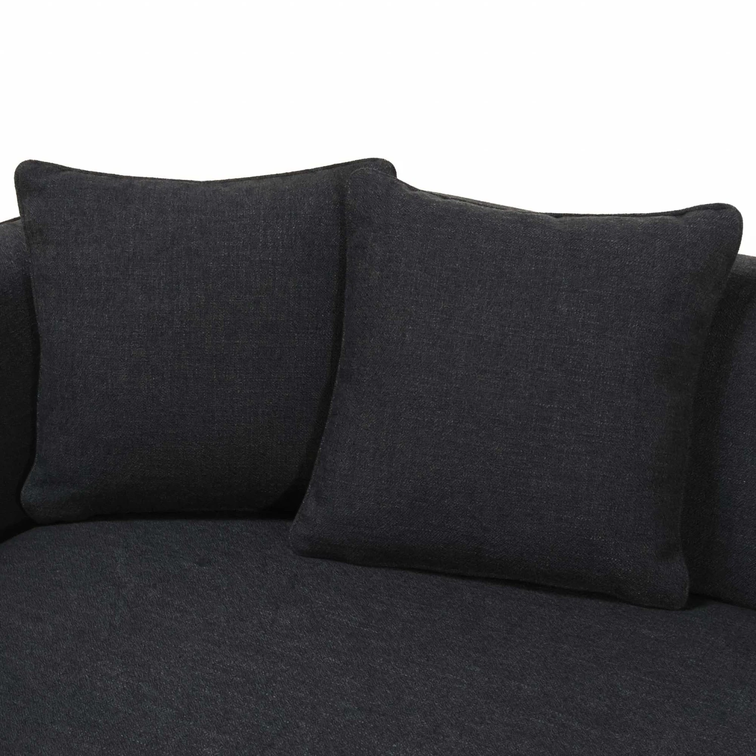 Soft and durable, the cotton/poly black tweed upholstery features subtle texture with just the right amount of weight and structure to stand the test of time.