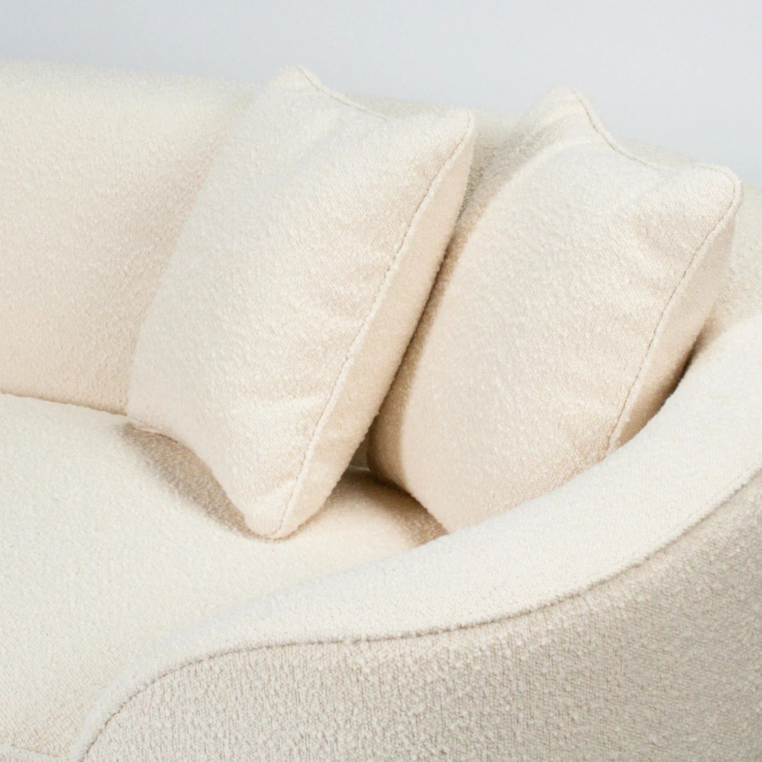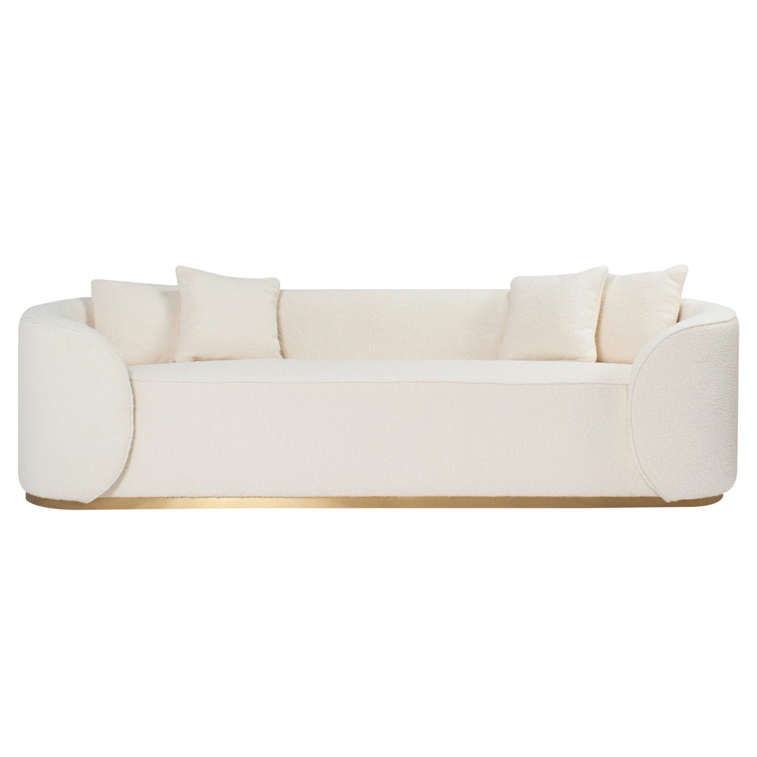 Armed with the perfect pitch and texture-rich boucle fabric, our Martita Sofa is not only the prettiest seat in the house but also a comfy one. Inviting and enveloping with soft boucle and a brass plinth base.