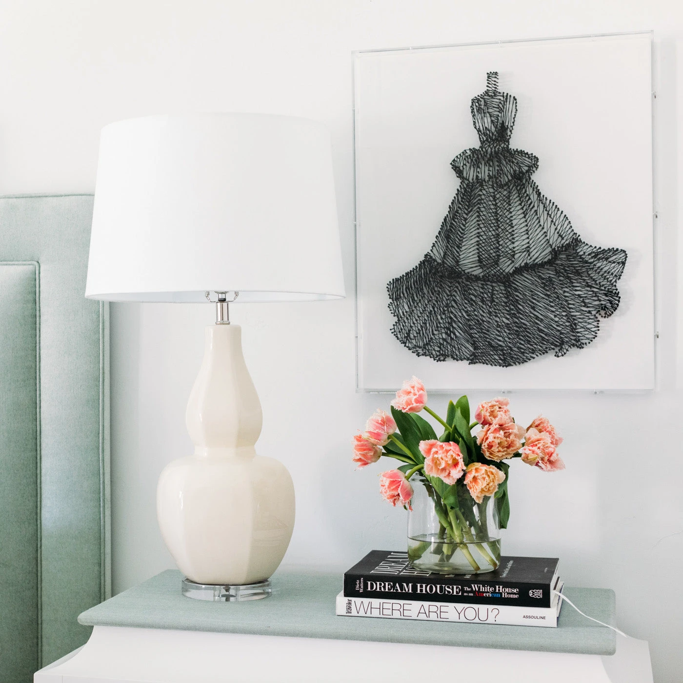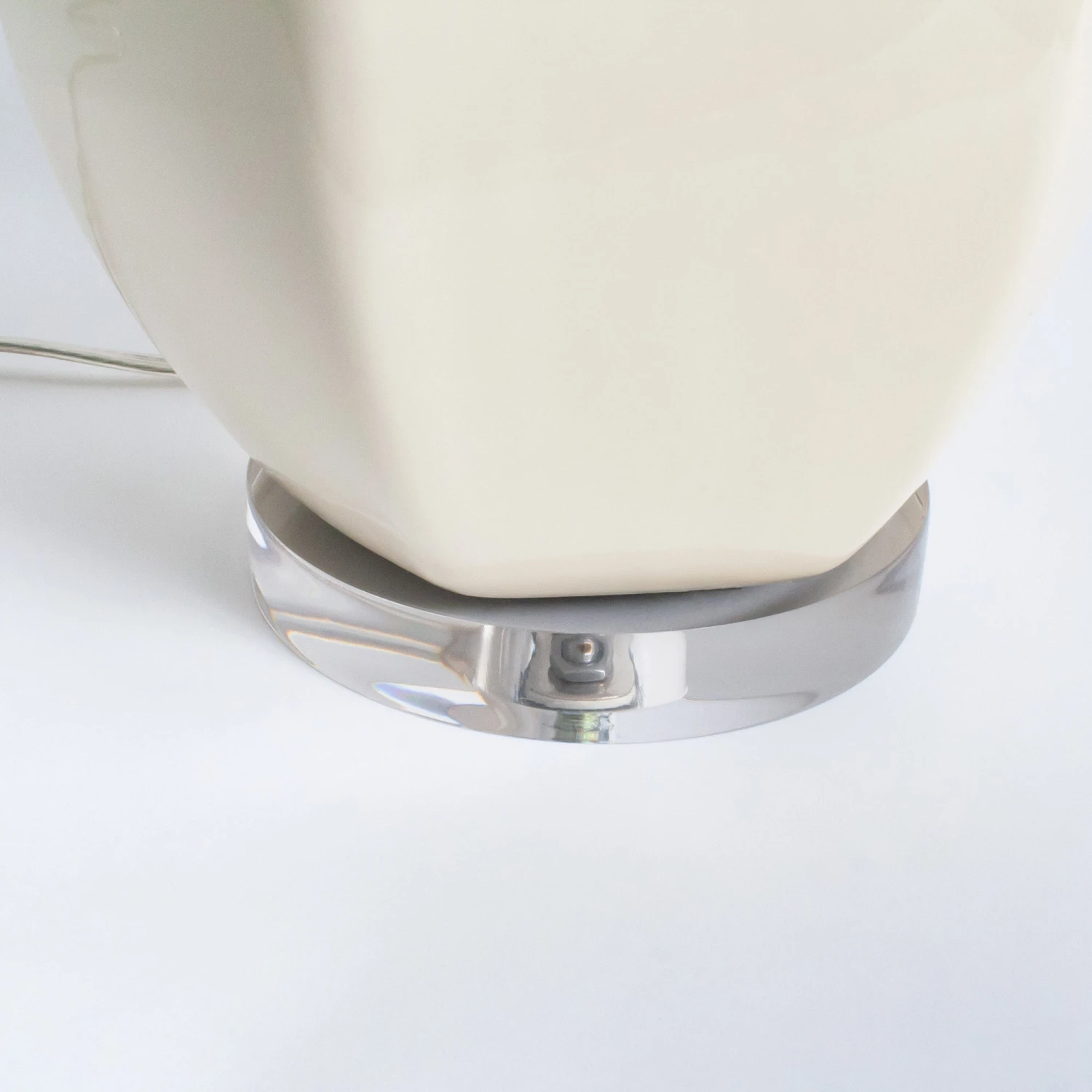 Artfully aesthetic. Handmade in Dallas, this artisan lamp features an off-white finish with a unique geometric shape. An acrylic base and finial complete the look.