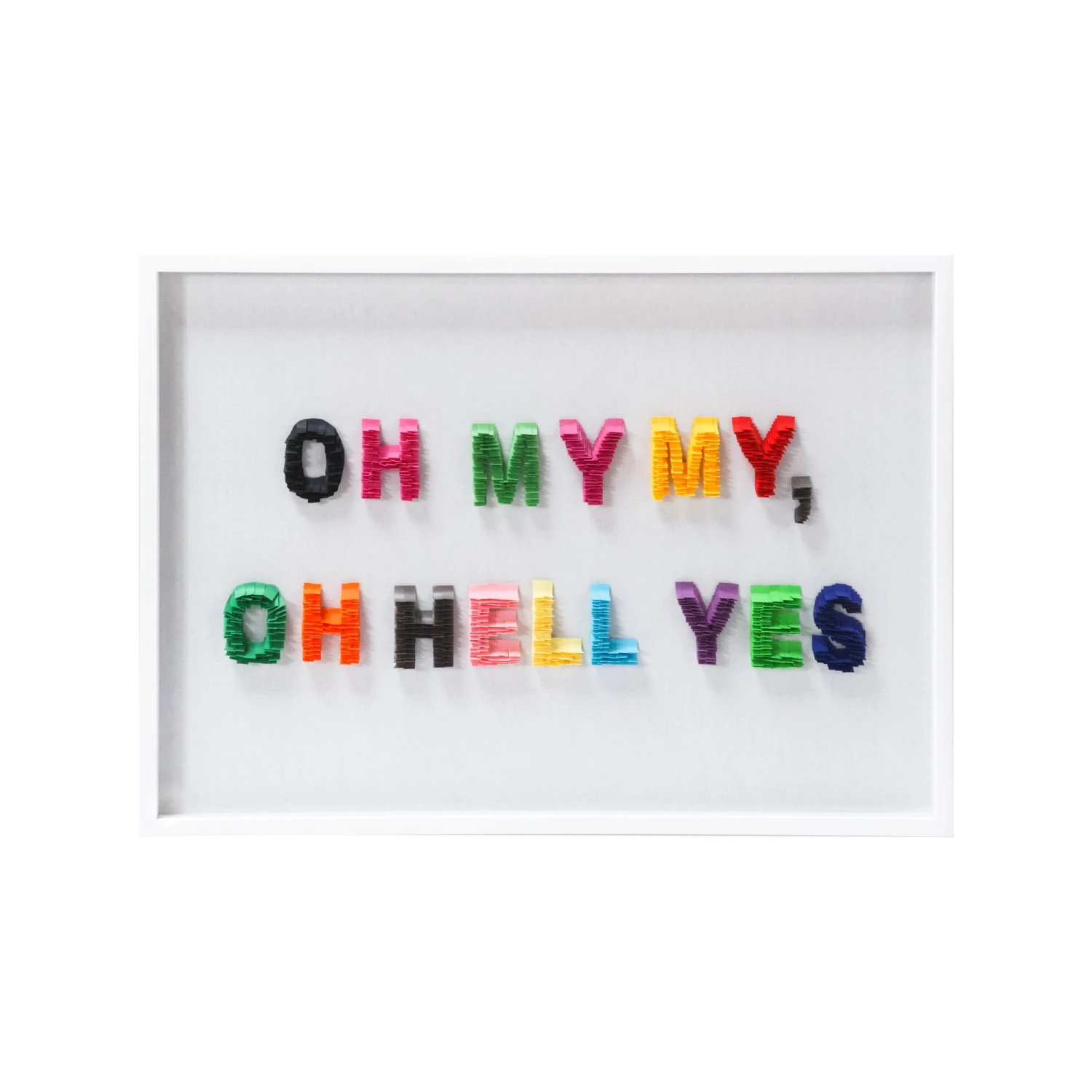 They say a picture is worth a thousand words – what about a thousand post it notes? New from the Tat Frederick studio, this piece features colorful post it notes making up the phrase ‘Oh My My, Oh Hell Yes’.
