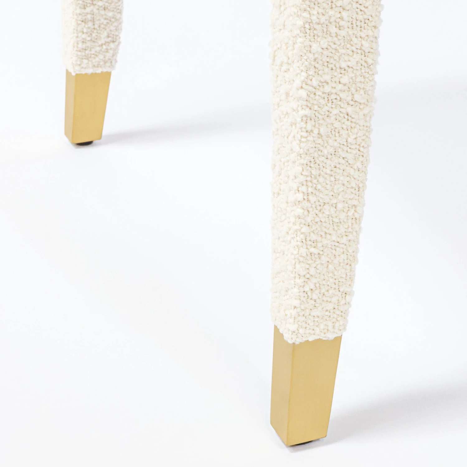 Our Revelry Dining Chair provides all of the modern interest you want with the softness of ivory boucle fabric. We love the brass accents and unique open back design.Â
