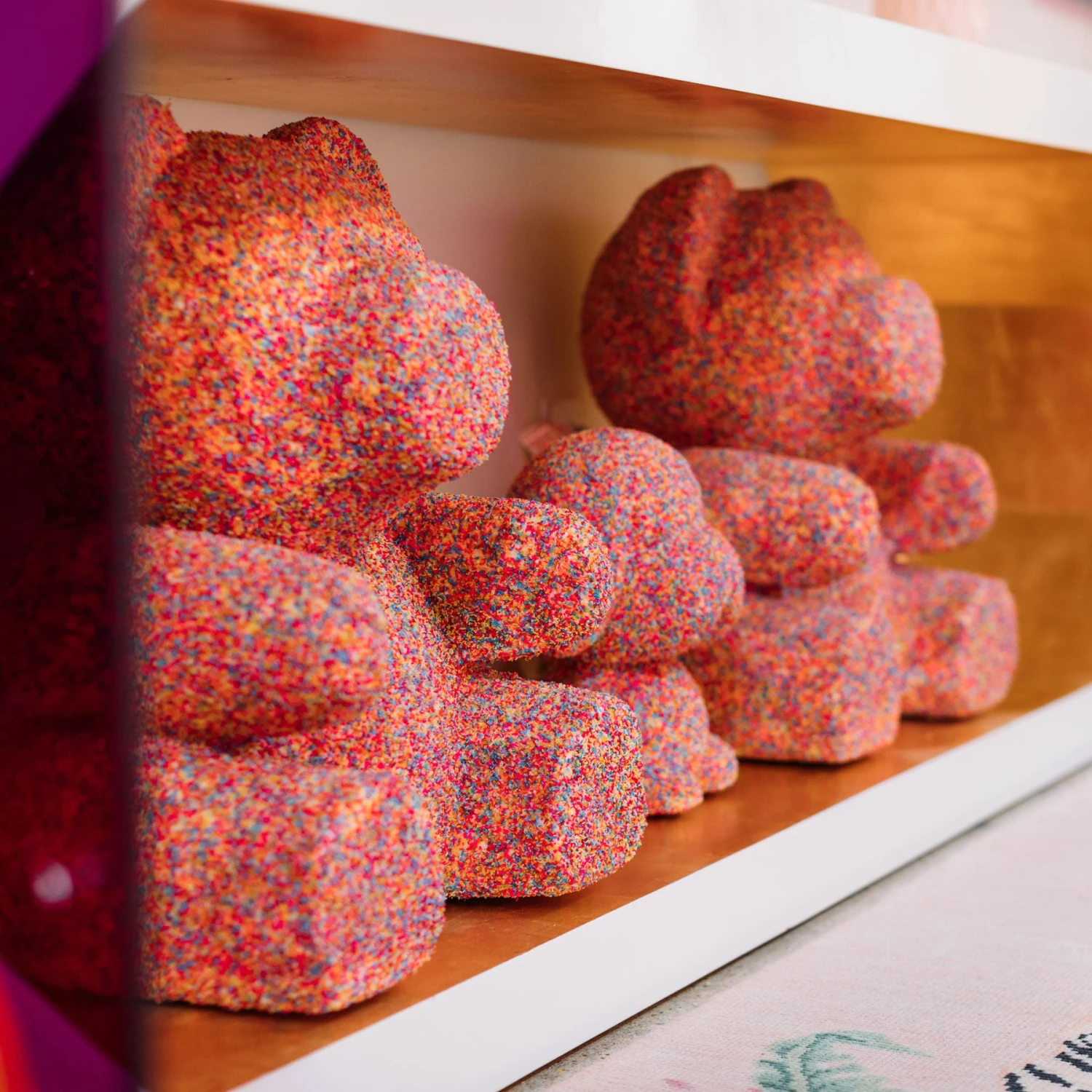 Dog sculpture covered in sprinkles with hook on back for hanging. The sprinkles are actually clay! Hand-rolled and cut to form sprinkles.
