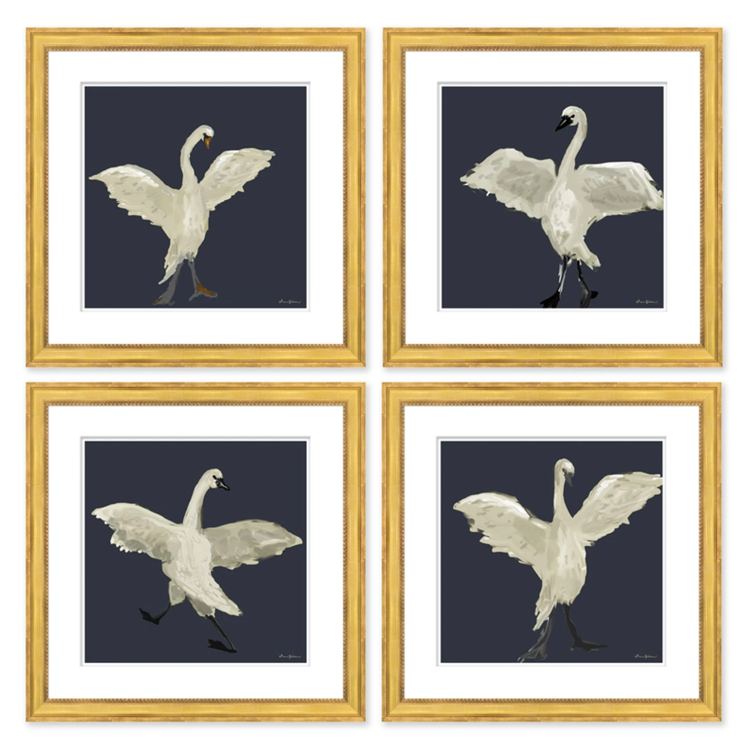 Giclée print of an acrylic painting by Dana Gibson. ‘Swan Pose‘ is printed on archival paper and framed in a gold frame.Â