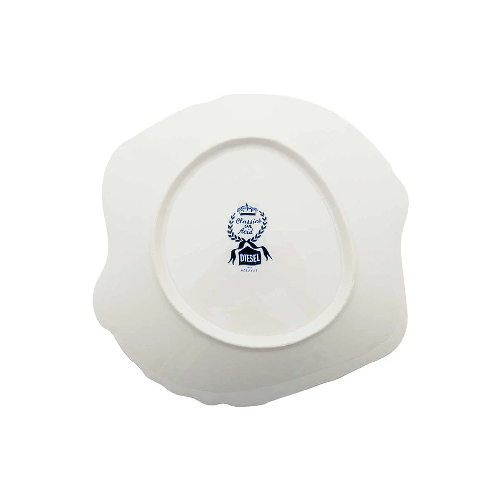 A traditional ceramic with a twist – call it classics on acid. Soup plate by Seletti featuring a warped traditional Talavera majolica motif in blue.