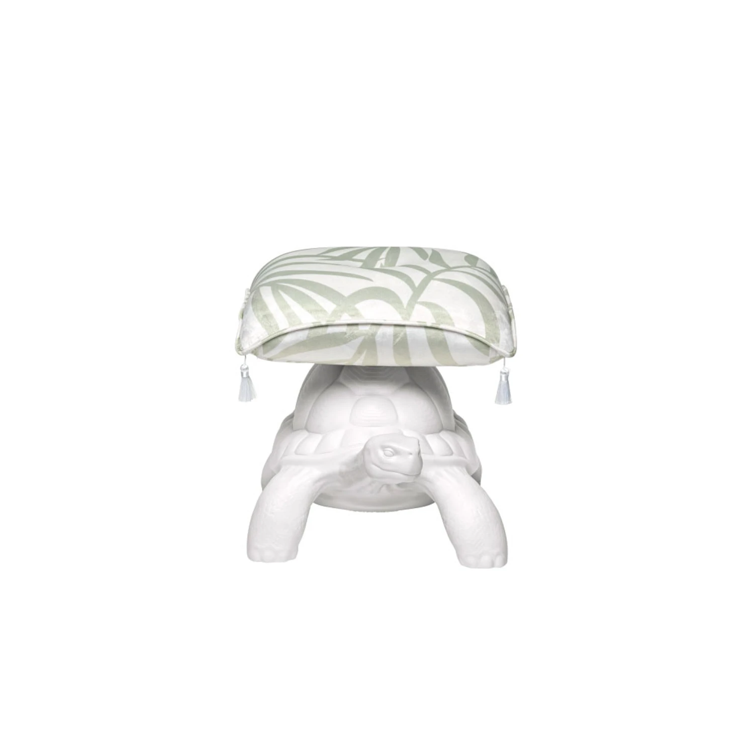 Turtle Carry Pouf, designed by Marcantonio, carries on its carapace a soft cushion that can function as a seat, footrest, or an additional tabletop. For your moments of relaxation!